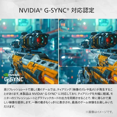 G-SYNC CompatibleおよびFreeSyncに対応しており、GPUとモニターのリフレッシュレートを同期させることで、画面の「ティアリング(映像のズレ)」や「スタッタリング(カクつき)」を抑制します。