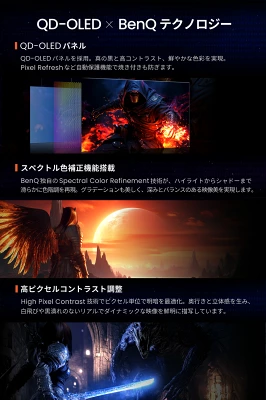 量子ドット技術による鮮やかな発色と、OLEDならではの漆黒表現を組み合わせることで、まるで現実と見間違うほどの映像体験を実現しています。