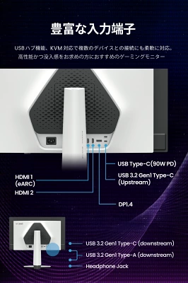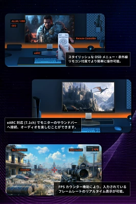 さらに、KVMやUSB-C 90W給電、eARC対応など、実用性と快適性を高い次元で融合。FPSからRPG、さらには動画制作や配信まで幅広く対応します。