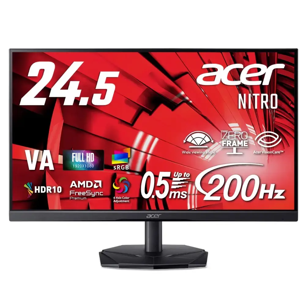 Acer「KG251QX3bmiipx」は、最大200Hzリフレッシュレートと最小0.5ms(GTG)応答速度を誇る24.5インチのフルHDゲーミングモニターです。