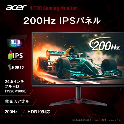 Acer「VG250QX6bmiipx」は、24.5インチのフルHD解像度(1920×1080)に200Hzリフレッシュレートを備えたゲーミングモニターです。