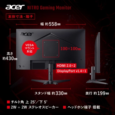 この記事では、Acer(エイサー)製「VG250QX6bmiipx」の特徴や基本仕様をまとめています。