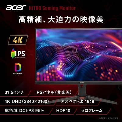 Acer「XV320QKV4bmiiprx」は、31.5インチの大画面に4K UHD(3840×2160)の高精細映像を映し出すIPSモニターです。