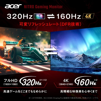 DFR技術で「4K×160Hz」と「FHD×320Hz」を切替