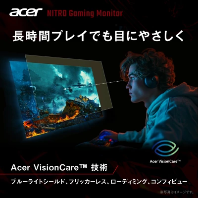ゲーマーにとって重要なのが、長時間プレイ時の“目の負担”。XV320QKV4bmiiprxは、Acer独自の「VisionCare」技術を採用しています。